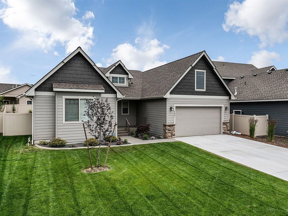 Winner of 5 awards for best int./ext. design & layout, kitchen, master suite & energy efficiency plus loaded w/ upgrades, this home has it all! The open concept 2183 SF 3 bedroom/2.5 bath home is in the desirable Foxtail community. Natural light through large windows overlooking the landscaped, fenced backyard fills the living room & dining area w/natural light. Double sliding doors open to the patios extending the living & entertaining options. Or stay in & enjoy warmth from the gas fireplace w/raised hearth. A spacious kitchen & center island w/seating gleams with granite counters & white tile. The master suite w/walk-in closet boasts a spa-like ensuite bath w/an oversized glass shower, tub & 2 sinks. 2 more bedrooms share a full bath. There is a tiled mudroom w/sink & 2 car att. garage