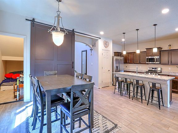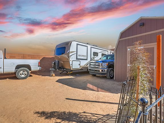 Backyard RV storage space w/120v hookup. Large open concept Kitchen island seating for 5, tons of cabinet space, granite countertops, under cab lighting & SS appliances & opens to the Living room with gas fireplace & dining area. Custom barn door for privacy on main living space. Large second living space/den on 2nd floor. Large 2 gar garage with built in workshop. Great home fCustom privacy gate with backyard access to park an RV, extra cars or camper, large Tuff Shed w/electricity. Assumable solar system. Convenient to travel to Santa Fe or Los Alamos.