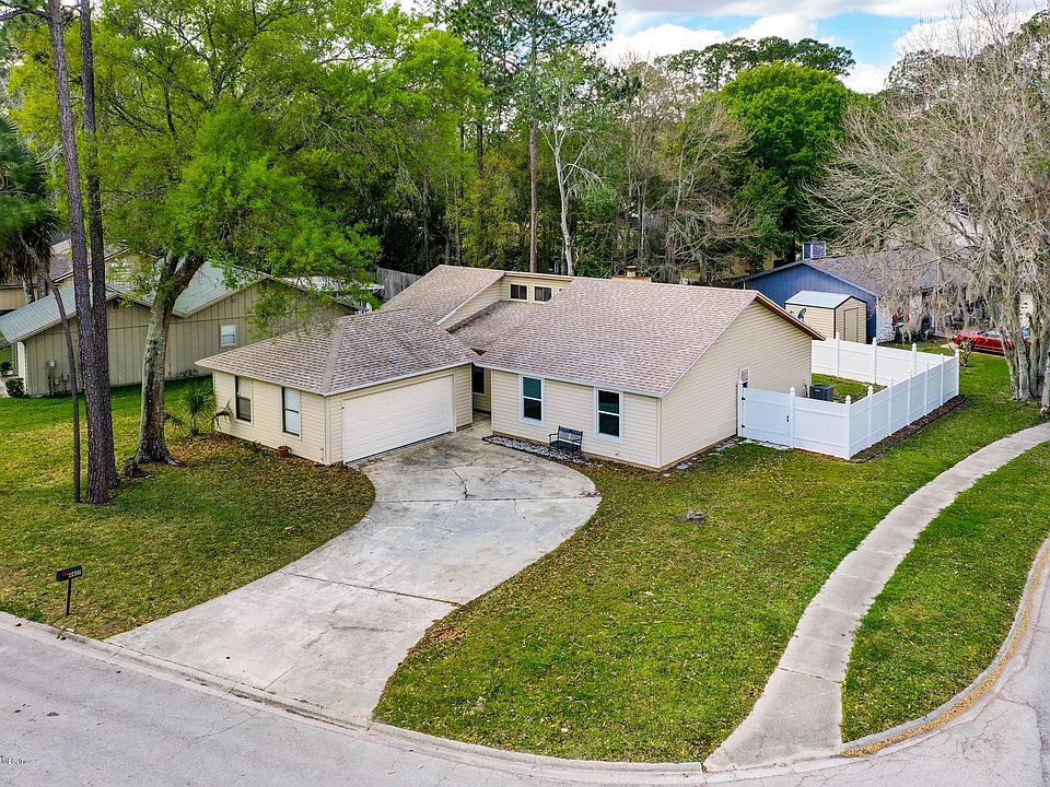 Welcome to this beautiful, well loved, home situated on a large, corner lot in the heart of Mandarin. This property features 4 bedrooms, 2 baths, large great room with vaulted ceilings and lots of natural light, wood burning fireplace, updated kitchen with eat in area, updated bathrooms, laminate floors, French doors leading to a porch overlooking the private, fully fenced, backyard, inside laundry room, and much more! Move in ready with fresh paint, newer roof (approx. 3 yrs old), newer hot water heater, and exterior a/c unit.*Seller will provide a Home Warranty with acceptable offer*