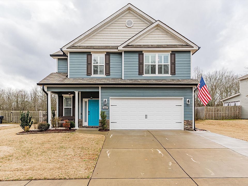 This gorgeous, immaculately maintained home is like new and loaded with upgrades! VA assumable rate 2.375%! Newer carpet, plantation shutters throughout, and upgraded closets just to name a few. This beautiful home features hardwood flooring throughout foyer and living room along with a powder room located off of the foyer. Spacious Great Room with beautiful stone fireplace open to kitchen and dining area. Kitchen features all white cabinetry with subway tile backsplash, stainless steel appliances, pantry, large island with eat-in bar seating. Large Dining area overlooks the private backyard. On the upper level, there is a luxurious master suite complete with large, walk-in closet with custom wood shelving, and a master bath that features dual vanities, large soaking tub and stand alone shower. Three additional guest bedrooms all with custom closets and shelving with another full bath that has dual vanities. The laundry is also conveniently located on the upper level. Fabulous, private back yard with covered porch and privacy fence overlooking green space and backs up to a creek. Covered porch and extensive patio with new landscaping and black gutters. Driveway has also been extended to add additional parking. Low VA assumable rate! Willow Oak Village is close to Ft Gordon and I-20. The neighborhood features a resort styled pool, sidewalks, and walking trails.