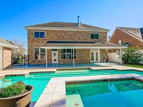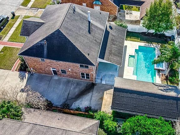 Stunning, grand home in a desirable gated community steps to the lake! This well maintained home features a spacious floorplan with large rooms, high ceilings, loads of storage space & walk-in closets, downstairs master suite with patio access. Picturesque property with curb appeal, fabulous covered patio overlooking the pool, & a finished garage w/ cabana room & bathroom. Gorgeous inground pool surrounded with landscaping.