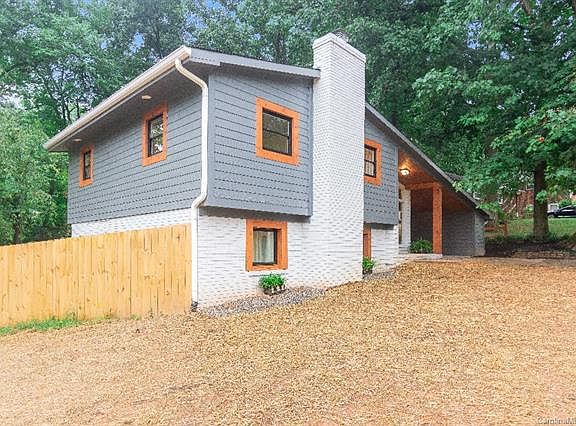 Location, location! Five minutes to South End or South Park or walk to Woodlawn Light Rail Station. Quiet leafy neighborhood, stunning MID CENTURY MODERN completely redesigned by PARK AVE RENOVATIONS with all the up to date must haves. Wide open floor plan is enhanced with soaring vaulted ceilings, lots of glass, real hardwood floors, two fireplaces, two separate living areas, custom chef's kitchen with huge island, quartz counters, designer cabinets. Huge master suite includes fireplace with sitting area, generous his/her closets, and stunning en-suite with enormous walk in tiled shower, soaking tub, unique designer wood paneling. Two generous secondary bedrooms, each with its own designer en-suite. Fully fenced back yard with patio and two good sized storage building. This house is truly one of a kind and better than brand new with new plumbing, wiring, HVAC, windows, roof, kitchen, baths, and more custom touches too numerous to mention.