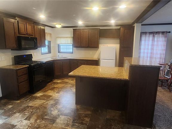 3 Bed 2 full bath ranch move in ready in Lil Wolfe Community. Home is only 7 years young very well maintained showing pride in ownership by the original owner. Easy maintenance free one floor living. Large deck with retractable awning. Exterior has upgraded insulated skirting to keep heating and cooling costs low. Private back yard. Large chef's dream modern kitchen with gas range. Appliances are in excellent condition. Abundance of cabinet space with pantry and large center island. Luxury granite countertops. Open concept to dining area and extra large living room. Laundry and mudroom. Extra wide hallway leading to 3 large bedrooms with large closets. Master bath is huge and features new 5 ft walk in shower with seat. Additional full bath with tub. Central air and economical gas heat. Community offers many amenities in park like setting. Swimming pool, clubhouse basket ball court, playground and picnic area. Included with lot rent is water, sewer and trash.