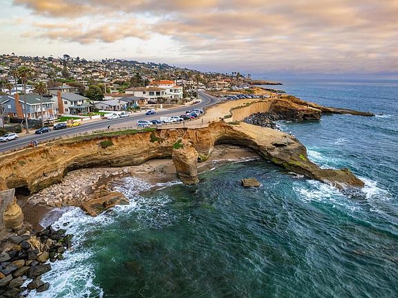 Sensationally Unique Beach House with Owned Solar System and Oasis Backyard! Situated in a coveted area just blocks from Sunset Cliffs, this 3BR/2BA residence radiantly charms with beautiful Spanish architectural influences, majestic ocean views, lush palm trees, and a cozy front porch. Explore the luminous interior to find gorgeous real wood flooring, an openly flowing traditional layout, new interior paint, comfortable living area, and a remodeled kitchen featuring a gas range, granite countertops, and a dining nook. Step into the paradise-inspired backyard to discover over 250 trees, an outdoor shower, firepit, dining area, stunning stonework, soothing waterfalls, and walking trails. Designed for relaxation, the primary bedroom impresses with a wood-burning stove, ample closet space, and recessed lighting. Other features: attached garage, large sundeck, double-pane windows, whole house water filtration, near shops, dining, and the beach.