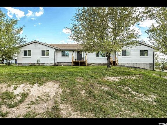 Charming farmhouse on the east bench of Eagle Mountain with over an acre of horse property! 6 bedrooms, 4.5 bathrooms, 2 kitchens and 2 laundry rooms. Clean, well kept, spacious living spaces. Floating shelves in the kitchen, gas or wood burning fire place in each of the living rooms. New windows, new carpet, new flooring and new paint throughout. Huge storage room, shop area and exercise room in the basement. Secluded yard with mature trees that provide lots of shade and plenty of yard space for all of your needs. Accessory apartment in the basement. Must see in person to appreciate!! CALL US to schedule your appointment.
