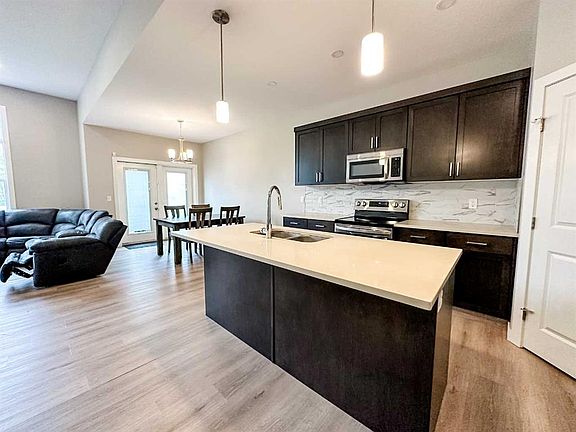 Step into modern comfort with this 1,400 sq. ft. bungalow, built in 2022 and designed for contemporary living. This 2-bedroom home features an inviting open-concept layout with a spacious living room, perfect for both everyday living and entertaining. The stylish kitchen offers quartz countertops, a large island, stainless steel appliances, and plenty of storage. The primary suite is a true retreat, complete with a 5-piece ensuite featuring a soaker tub, double sinks, and walk-in shower. Throughout the home you’ll find durable vinyl plank flooring, recessed lighting, and a soothing neutral color palette. Enjoy outdoor living in the large, fenced yard with low-maintenance vinyl fencing—ideal for pets, kids, or private relaxation. A move-in ready property combining modern finishes and thoughtful design.