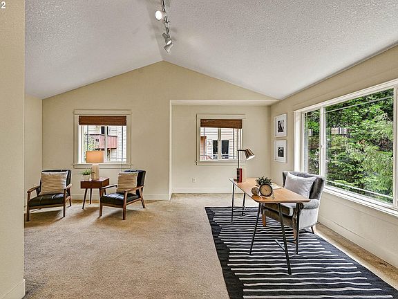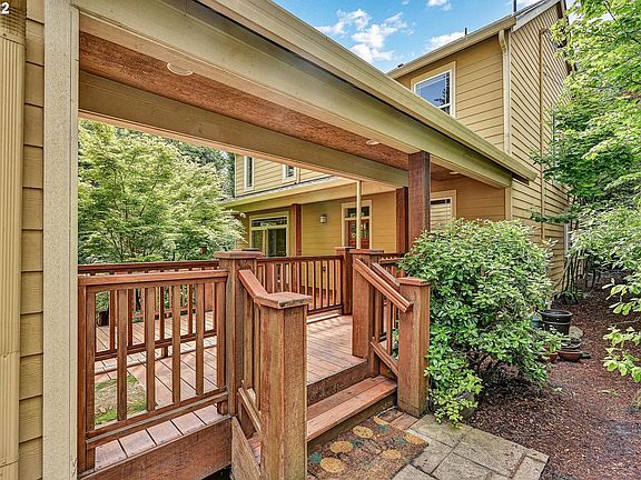Nature and city living come together with this beautiful 2,560 sqft 4 bedroom & 3 ½ bath home that includes a separate, spacious work-from-home office (or guest/mother-in-law quarters) connected to the main house via a covered walkway. Enjoy nature and privacy on this .45 acre lot relaxing on covered decks looking into 44 acre Woods Memorial Park. Located just minutes to Multnomah Village, PCC Sylvania, and short drives to downtown and shopping at Washington Square, and Bridgeport Village.