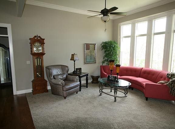 Outstanding city skyline views from teh beautiful new 1 1/2 story floorplan by Carson Custom Homes! Huge hearthroom kitchen w/ terrific center island, walk in pantry, granite countertops, custom cabinets, and corner fireplace! First floor master suite! Covered deck! Full walk out bsmt! Just minutes from downtwon KC! AAA Park Hill Schools.