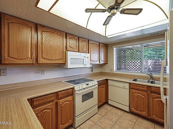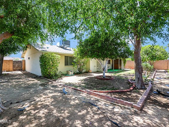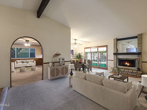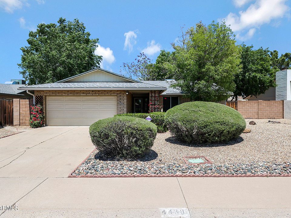 Charming single story home in Park Place North with no HOA! Inviting curb appeal with low maintenance desert landscaping. Enter in to the open great room with vaulted ceilings and cozy wood burning fireplace. Kitchen is appointed with matching appliances and breakfast bar overlooking the living room. Primary suite with vanity, dual closets, and walk-in shower. Private backyard with covered patio, grassy space, and citrus trees. Attached cabinets in garage for additional storage! Convenient location with easy access to freeways, shopping, dining, and more. This home boasts great opportunity, don't miss out! Property is being sold AS-IS.