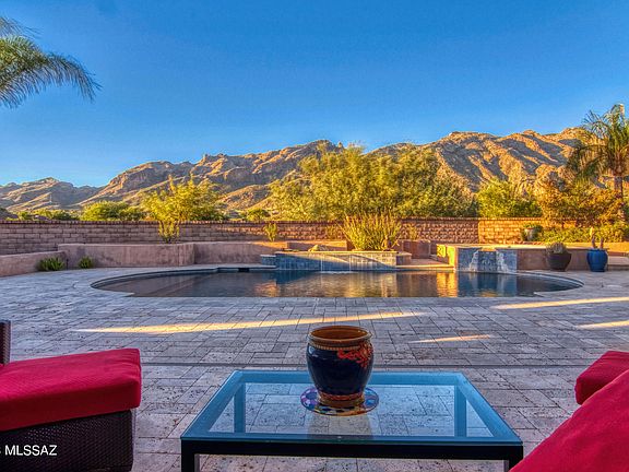 Recent updates to this luxury foothills home located on a premium lot in Paloma Canyon with unobstructed breathtaking views of Finger Rock and the Catalina Mountains. Home overlooks a desert common area studded with majestic saguaro cactus. Relax on the covered travertine patio of this backyard oasis... listen to the waterfall, take a dip in the pebble tech pool, soak in the jacuzzi or just unwind by the built-in gas firepit with your favorite beverage and watch a stunning sunset. With only a neighbor to the east, this property affords maximum privacy. There is a three-car garage, even a mini putting green!The backyard patio doors open to a spacious great room with a tiled gas fireplace. The adjoining kitchen features granite countertops, brand-new stainless steel appliances with induction cook top. Laundry equipped with washer / dryer, spacious linen closet & overhead cabinets. The exterior of the house and perimeter stucco backyard wall re-painted in Nov. Interior rooms: foyer, dining room, living room, office, great room, & kitchen all freshly painted. Brand-new commodes in all bathrooms & a new water heater installed Dec. 2023. 3 car garage with electric hook up.