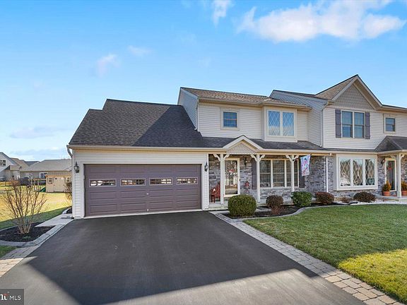 Exceptionally maintained semi-detached home offering 3 bedrooms, 2.1 baths, a beautifully finished basement and lovely landscaping. The open floor plan allows for flexible furniture arrangement. Wooden columns define your entry into the eat-in-kitchen with natural cabinetry and a glass tile backsplash. Through the sliding door the composite decking awaits your entertaining along with an electric retractable awning to shade you from the sun. The first floor is finished with a powder room and laundry room with pantry. On the second floor, the primary bedroom with an ensuite bath is appointed with a double vanity sink, shower and a WIC while the other two bedrooms share the hall bath with a tub shower combination. You will not want to miss this home with almost 2200 of total living space and a large two car garage.