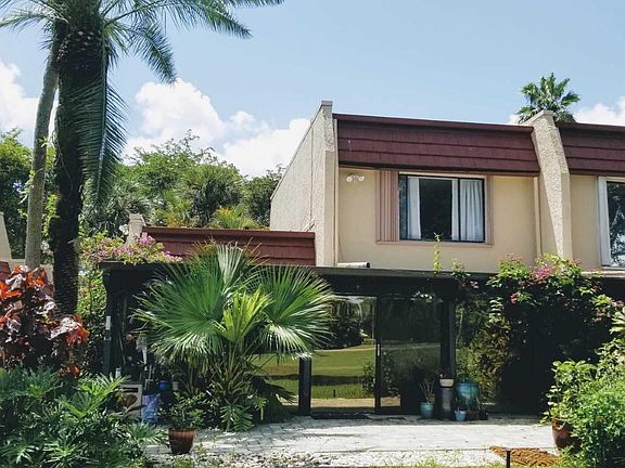 No membership required! 2 bedroom 2 bath townhouse with an additional entertainment area. Newer appliances , patio was expanded. Pool directly across. Golf course views, end unit. Upgraded flooring upstairs, updated cabinets in kitchen, water filtration system added as well as sprinkler system, tankless water heater. Unit has tons of potential and ready for you to remodel to your taste. Hurricane protected with accordians throughout.