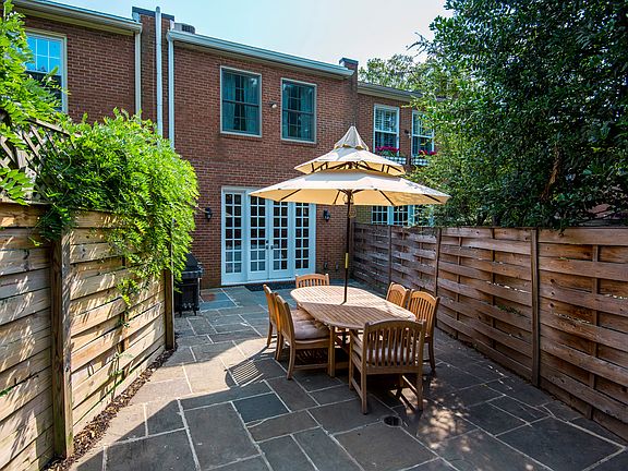 Stately Federal style townhouse in Palisades. 2-3 bedroom home with 3 full baths. Fantastic open layout great for living/entertaining. 2 huge bedrooms on top floor and den (or 3rd bedroom) with fireplace & full bathroom on first floor. Double-wide French doors to deep fenced yard with patio. Wood floors throughout. Garage parking. Walk to Georgetown and C&O canal. Minutes to Downtown & Virginia.