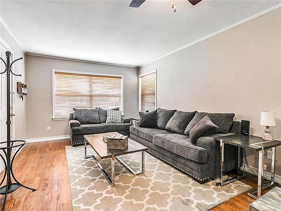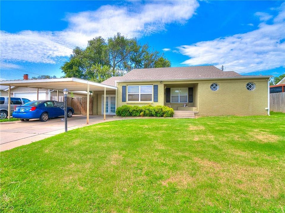 This home gives you room to breath at over 1800 sq ft! Mature shade trees frame the backyard and provide a great place to relax and unwind with the added privacy of the wood stockade fencing. Beautiful real wood floors greet you as you walk into this tasteful home. The kitchen features shaker style cabinet doors, lots of counter space and a built in microwave. The primary bedroom suite boasts two closets and a beautifully updated bathroom. New carpet has recently been installed in the 3rd bedroom and the 2nd living room/bonus room. The utility room/laundry room gives you lots of interior storage and has recently had new vinyl wood-look vinyl plank flooring installed. Low-e vinyl windows are an energy saving feature plus the back patio door and the french patio door off of the 2 vehicle carport have been replaced by the current owner. This great location is just minutes away from the Plaza district, Paseo, Mid-Town & Will Rogers with easy access to I-40, I-44 and Lake Hefner Parkway.