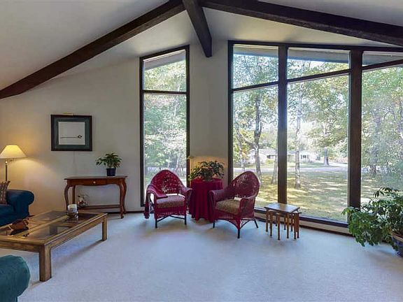 Nestled in the woods of sought after Indian Trails is this gem of a home built with an eye and quality of character. This ranch style home has lovely built ins, a lot of storage and space. You'll love features like hardwood floors, a dramatic living room with beamed vaulted ceilings and two-way fireplace that is shared with the charming den. First floor laundry and home office, lots of windows to enjoy the beauty and nature around you. Move right into this well cared for home.