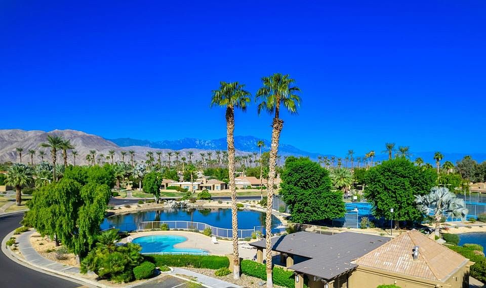Charming 3BD/2BA + Den/Office located inside Hidden Palms nestled in the heart of Palm Desert. Boasting the largest floorplan and well positioned within the community, this condo captures beautiful views of the lake and surrounding mountains. Once inside, you'll find a desirable layout that features; High Ceilings, Custom Tile Flooring, Newer Windows & Sliding Glass Doors, Roomy Kitchen w/ Granite Couter-Tops, Spacious Bedrooms, and an Expansive Great Room equipped with a Floor to Ceiling Brick Fireplace. Community amenities include: guarded gate, 4 pools/spas, Lighted Tennis Courts & Pickle Ball Court, Basic Cable, and Walking Paths that weave around the neighborhood's Serene Lakes. Bonus: Minutes to renowned El Paseo, The River, Restaurants, Movies, Golf Courses, Hiking/Biking Trails, Award-Winning Schools, Community Parks & Premier Healthcare