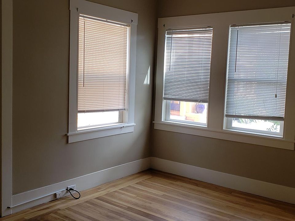Jr one bedroom apt in 4 unit building on courtyard. Updated kitchen and bathroom. Original craftsman detail. Hardwood floors. On site laundry and parking for one compact car. Walk score 92 near BART restaurants and shops. One cat or one dog under 25 lbs ok. Open house between 4 and 6 on Tuesday and between 2 and 4 on Saturday. Owner pays trash water and sewer