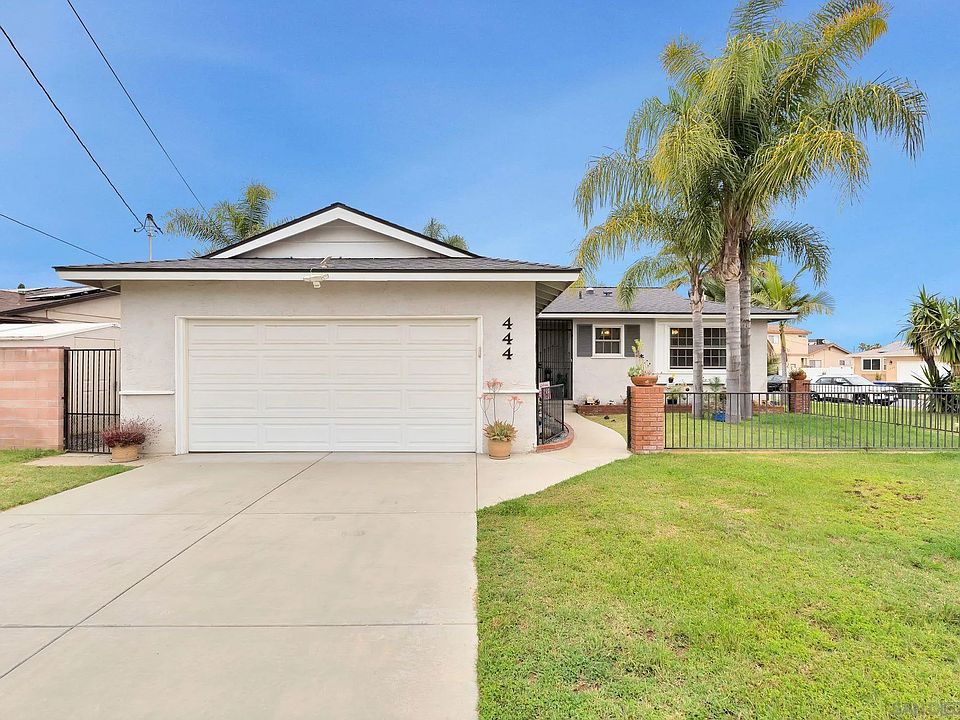 This charming 3-bedroom, 1.5-bath single-family residence is perfectly situated on a large corner lot. Step inside to a spacious living room featuring XL three-paneled sliding glass door that opens to a generous backyard, providing a seamless transition between indoor and outdoor living. The kitchen exudes a delightful country farmhouse feel with maple cabinets that extend to the ceiling, white porcelain sink, satin nickel faucet & charming white & blue decorative back splash. Ample kitchen/dining room storage with pull out organizers plus office nook. Throughout the home, solar tubes & new lighting fixtures enhance lighting, creating a warm atmosphere. Additionally, the house is equipped with solar panels, new roof, newer double-pained windows & newer AC/furnace system, ensuring energy efficiency & year-round comfort. Recently remodeled main bath has new vanity, fixtures, flooring, lighting & stunning tiled shower with glass doors. Three spacious bedrooms include custom closets, ensuring plenty of storage. The primary bedroom has lots of windows that flood the room with light & an en suite bathroom with a private toilet & sink. The huge yard is fully fenced, offering multiple areas for entertaining, from a front grassy area to a cozy, covered seating space in the backyard & large side yard complete with a storage shed. The two-car garage is an organizer’s dream, equipped with floor-to-ceiling cabinets plus rafter storage. This home combines comfort, style & functionality, making it the perfect place for you & your family to create lasting memories.