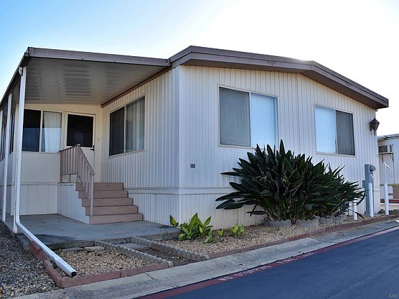 Very Spacious, with lot of natural light and well maintained 2beds 2baths home with a well built California room and a walking closet. All appliances convey. 3 Sheds included, Carport for 2 cars, backyard with space for green garden and wonderful avocado tree. Move in ready with only some cosmetic/style renovations. 55+/18 Senior park with 1185/month rent with rent control. The park is one of the nicest parks in the heart of Chula Vista with nearby schools, commercial areas, public buses and the freeways 5 and 805.