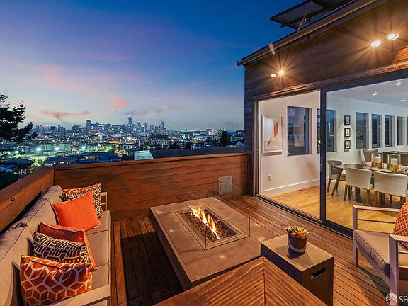 Extraordinary two-story modern Penthouse condominium on the coveted North Slope of Potrero Hill with sweeping, unobstructed views of the Downtown San Francisco skyline, Bay Bridge & Bay. Rarely available & truly one of a kind, this residence blends architectural elegance with refined contemporary design. Features include gleaming hardwood floors & staircases, high ceilings, sun drenched bay windows, skylights & recessed lighting. 3 bedrooms on one floor, 2 full remodeled bathrooms, 1 remodeled half bathroom, formal entry with beautiful staircase, formal living room with woodburning fireplace, formal dining room, remodeled eat in kitchen with Thermador, Wolf, Miele & Bosch appliances, additional woodburning fireplace in primary en-suite, 5 walk-out view decks, Asko stackable washer/dryer, hot tub, fire pit, 1 car garage side by side parking with interior access, enormous storage room, solar panels, sprinklers, Nest thermostat, newly refinished hardwood floors & staircases, newly painted interior. Prime location on a tree lined street near 18th & 20th Street corridors, Whole Foods, parks & the revitalized Potrero Hill Recreation Center offering playgrounds, sports courts & dog friendly green space. With a 96 Walk Score, near Chase Center, Caltrain on 22nd St & easy 101/280 access.