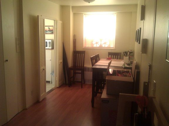 Penthouse Sunny Junior 1 bedroom (Big Studio with sliding french doors to create a cozy one-bedroom) Hardwood floors in the living room, a carpeted bedroom, and three large closets. The kitchen offers ample storage, a full refrigerator, gas oven/stove and dishwasher. East/west facing windows offer great natural light and cross-breeze. Located on a top floor of a Condo building with 2 elevators this unit also features a private balcony overlooking Bedford Street and an assigned off street parking space. The building is conveniently located in Downtown Stamford - very close distance to bars, restaurants, shopping and Metro North with easy access to I-95 and the Merritt Parkway as well. Laundry is available in building. Rent includes all utilities with the exception of electricity (so you DON'T pay for heat, hot water or cooking gas). 650 + credit and employment references required