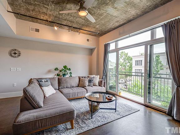 Outstanding condo in the heart of Downtown Raleigh. Walk to everything and own a piece of a growing city! This unit is very unique with its large sliding glass doors, concrete accent walls, built in tv stand, brand new range (Feb 2020) and new HVAC (2019). The tall ceilings of Palladium Plaza and open layouts make this unit and others feel much larger than sqft says. Tastefully updated kitchen and hardwoods added to the master bedroom. Unit includes 1 private parking space. Stop by today!