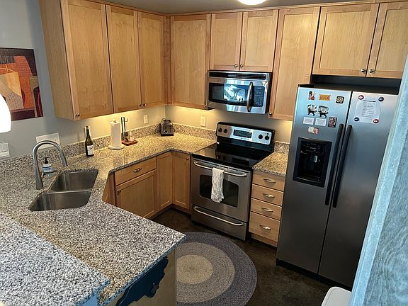 Modern/contemporary condo in a GREAT location! Clean unit, polished concrete floors, Juliet balcony, granite counters with SS appliances, uncovered garage parking (1 spot), Nest thermostat, walk-in closet, large bedroom. Great location! Walk to everything downtown! Owner pays for water and trash. Renter pays for electricity and cable / internet, basic maintenance. Private parking (1 spot), uncovered garage deck parking. Community grill and tables. No Pets, No Smoking! Must have good credit, proof of income, and references. 1st and last months rent plus security deposit due up front. Available December 15th.