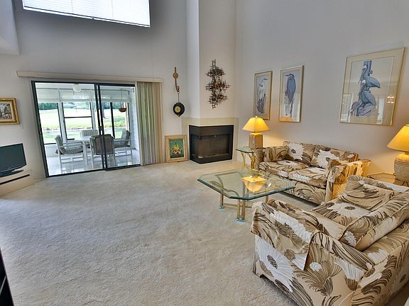 Fabulous Unit right on the Water with the Golf course beyond. This lovingly maintained home is clean and tight. It boasts stellar views from just about every room and also has a Florida Room that overlooks the water as well. The kitchen has a breakfast bar, nook and opens to the private courtyard. The living room has soaring ceilings with a fireplace and the dining room extends this area to create an inviting space for the family or guests. Upstairs are three bedrooms. The master has plenty of room for a sitting area, a vanity and sink area that is separated from the main shower/sink, so that the king and queen can both get ready in their own space :) There are also dual closets in this area. Pelican Bay is a Gated, Golf community that has Country Club/Restaurant & Pool Membership.