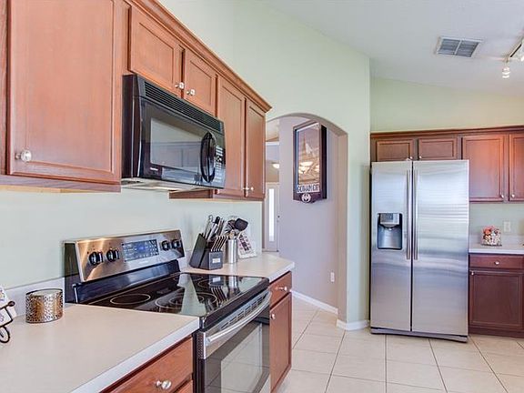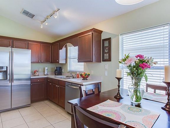 This Beautiful Property features a spacious open floor plan with high vaulted ceilings, tile in all living areas and laminate in all bedrooms. Master bedroom features a large walk in closet with a large shower and dual sinks. Open kitchen and family area with room for everyone. This home would be a perfect vacation home or primary residence. The home features a swimming pool with no direct rear neighbors to obstruct your view. The neighborhood features many amenities such as a community pool, basketball court, playground, and is conveniently located with easy access to Disney and all major attractions. Close to shopping, restaurants, and many golf courses as well as I-4, 192 and Champions Gate. Excellent location. Must see!