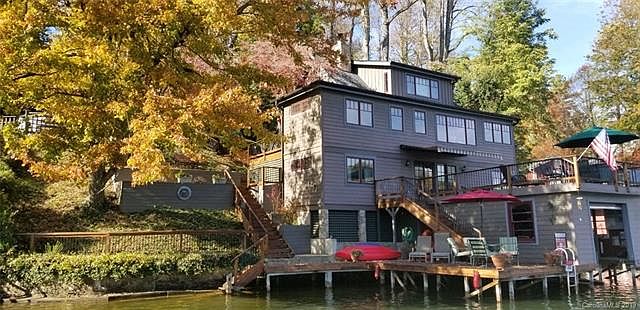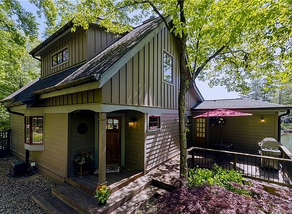 Wonderful updated Arts & Crafts home located directly on the lake. Superb master bedroom suite with lake views. Great Room includes a stone gas fireplace, kitchen to please any chef, and dining area. Additional bedrooms (each with lake views) and baths are located on each floor. Lower floor has walkout from the wet bar to IRONWOOD party deck and stairs down to more IRONWOOD docks with additional spaces for entertaining. Located on a "no wake" cove that protects swimmers, and floats, only 150' to the east-west channel and 1000' from the center of Lake Lure. Fenced yard includes lots of space for gardening. Off street parking and a 1-car garage/workshop (PIN 226973) make this house even more unique.
