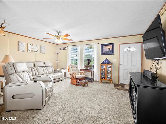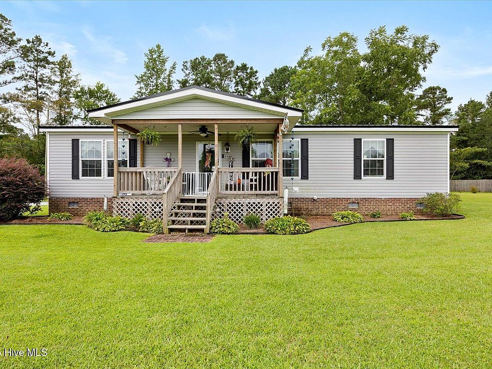 Immaculate Double-Wide with Plenty of Outdoor Space and No City Taxes. You'll feel right at home in this affordable and well-kept double-wide home. It looks and feels new, thanks to being gently lived in by a single owner. The home offers a spacious layout with three bedrooms and two bathrooms. The outdoor living is just as impressive, featuring a large 19'x9' rear porch and a welcoming 7.5'x17.5' front porch—perfect for relaxing. The property also includes a 16'x10' storage shed with power and a 25'x18' carport. Situated on 0.96 acres, this home provides plenty of room to roam. A durable metal roof, county water, and two septic systems add to the value and convenience. Best of all, there are no city taxes to worry about.