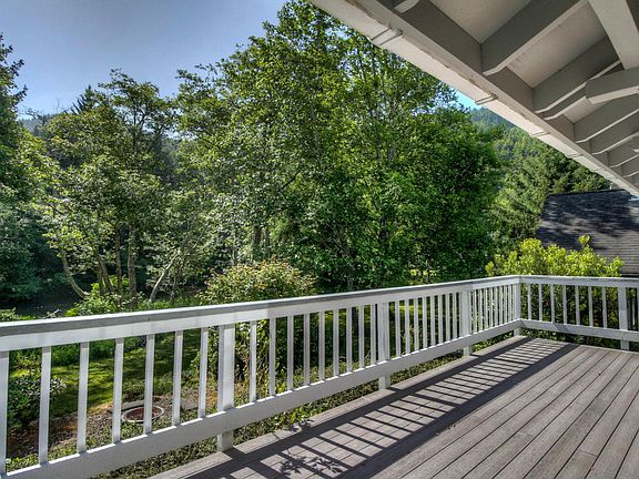 Riverfront cabin in the park-like setting of Quiet Water in Yachats. This light filled home with it's high living room ceiling and large windows is a peaceful retreat. The home has an attached one-car garage with workbench, storage and laundry facilities. The kitchen is light and bright with a lower level eat-in counter and center butcher block island. There are multiple sleeping areas, a loft and a full bath upstairs. Imagine entertaining on the attached rear deck or enjoying the firepit surrounded by stone benches in the back yard which backs up to the Yachats River.