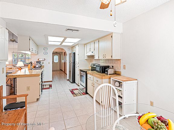 'ACTIVE W/CONTRACT Accepting Back Up Offers' ROOF 2023!! HVAC updated in 2022. Walk into this immaculate 2 bed, 2 bath, with an oversized 2-car garage. This home has been well maintained and cared for!! The living square footage is a little under 1,400, with a total structural sq feet of under 2,300. You will love this ope n concept, split bedroom floor plan home with high ceilings throughout. Water Heater replaced in 2019. Septic pumped in 2023, with Drain Fields replaced in 2010. Front Porch and Back Patio Screening was replaced in 2023. This home is located off of Waterfall Dr where there is no through traffic to ensure privacy for the residents that live there. Property is on small street with cul-de-sac. There is plenty of natural lighting that comes inside, with gorgeous plantation shutters on the windows. You won't have to worry about the high insurance costs, as this home is in NO FLOOD ZONE! In addition, the owner had third nail installation for additional wind protection on the roof. The garage has plenty of workshop space for anyone who is handy, totaling 528 square feet. Sit on the fully enclosed screen patio with your morning coffee and enjoying your private backyard. Home is less than 15 minutes to US-19 with EASY access to Clearwater/St Petersburg and Homosassa/Crystal River. Go watch the mermaids and enjoy fun in the sun at Weeki Wachee Springs State Park, which is less than 15 minutes away.