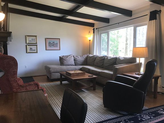 Conveniently located one level home situated in a mature tree country like setting. Central air, baseboard oil heat. Large living room, den with built in bookcases and cabinets, dining room, eat in kitchen with breakfast bar, updated appliances. 4 bedrooms, 2 full baths. Windowed sun porch overlooking private 1/2 acre lot. Large storage shed. Tenant is responsible for utilities except sewer and trash removal. This is a no smoking property.