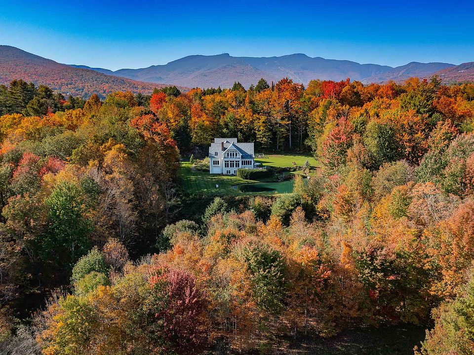 Welcome to Grey Birch Road, where you'll be treated to privacy and breathtaking panoramic views of the surrounding mountains across its expansive 7+ acre parcel. This inviting 4-bedroom home offers a spacious, light filled interior, designed with an open floor plan, ideal for entertaining. The chef’s kitchen opens to the dining room and then into a sunroom where you can kick back and enjoy the view of the pond and the mountains. The second-floor primary bedroom suite serves as a peaceful retreat. Three additional sizable bedrooms offer comfort and versatility, making this home perfect for families and guests alike. The partially finished walkout lower level presents a world of possibilities. Whether you envision a game room or a guest suite, this area offers plenty of room to bring your creative ideas to life. Outside you'll find a post and beam carriage barn, a large, level, private backyard with well-established gardens, as well as a deck that overlooks the spring-fed swimming pond. Conveniently situated between Stowe village and Stowe Mountain Resort, close to shopping, fine eating establishments and schools, this is a wonderful opportunity not to be missed.