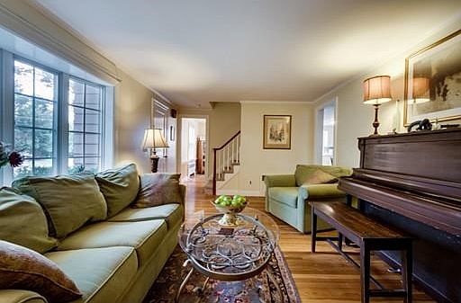 This pretty mid-century cape has so much to offer. Upon entering through the front door, there is a foyer with a closet and an interior door. To the right is a good sized living room with a fireplace and to the left is a nice dining room with wainscoting and a doorway to the kitchen which has a convenient back hall leading to a fantastic backyard and garden. There is a beautiful family with double doors opening out to a large deck. Part of this space is currently used as a great work area with a large table in it and the other part for a sitting area with a TV. The second floor of the home has four bedrooms and a full bath with ample closets and plenty of windows and natural light. The layout is very much like a colonial. The 15,000+ lot is tastefully landscaped with a lovely garden area. The driveway has plenty of room for a turn around and parking for at least 5 cars. The basement has nice high ceilings and good space, perfect for creating an office space, playroom, or man cave.