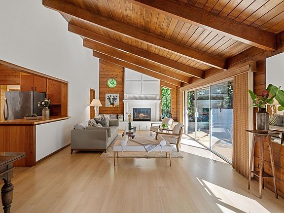 Masterfully crafted from solid cedar logs, the residence exudes warmth and elegance. The spacious living room, with vaulted ceilings and a sophisticated stone fireplace, opens onto a magnificent 1,100+ SF decka perfect vantage point to immerse yourself in the surrounding redwood forest.