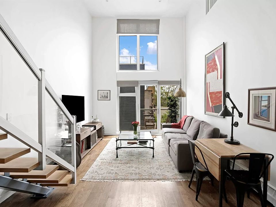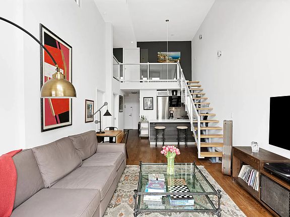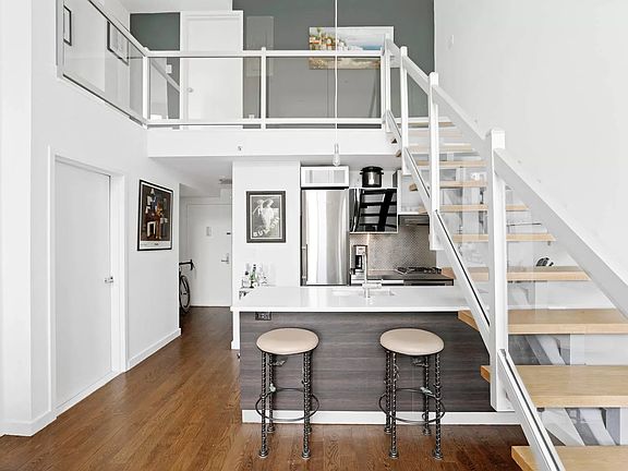?? Williamsburg - Boutique Condo - New Exclusive ? Spacious 2BD/2BA Duplex with Private Balcony, Private Storage, Central A/C, Chef's Kitchen with Dishwasher, Breakfast Bar, In-Unit Washer/Dryer, Sprawling Hardwood Floors, in a Luxury Building with Roof Deck and Garden ?? Step inside this expansive home, which greets you with its soaring 17-foot ceilings, sky-high windows, and roughly 1,100 square feet plus a private balcony. The generous, open layout spans two levels, is lined with sprawling hardwood floors, and is flooded with plenty of natural light. On the main level, no detail was spared in the stunning, open chef's kitchen with stainless steel appliances including a Bosch dishwasher and Miele gas stove/oven, juxtaposed against a glistening tiled backsplash. In addition, the breakfast bar perfectly blends the kitchen with the living room, offering a great space to entertain with plenty of room for a separate dining area, all the while leading you to your own private balcony; creating a splendid spot for your morning coffee or afternoon tea. Also included on this level is the first bedroom and full bathroom for convenience. On the second level, you'll find the primary bedroom with an additional full bathroom with shower, along with a bonus half room that is currently configured as a laundry room/built-out closet and can easily be converted to a small office. As if that isn't enough, other notable features include ample closet space throughout, central a/c and heating, recessed lighting, and in-unit washer and dryer, while the bathrooms leave no stone unturned with a spacious stand-up shower or a luxurious deep-soaking tub and vanity which offers great storage for your organizational needs. Separate storage unit included in the sale. Residents of 444 Humboldt Street enjoy the convenience of an elevator and intercom system.