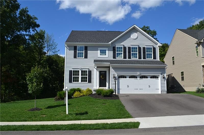 Two years young, this impeccable Ryan home looks like a model. With a semi-private lot and culdesac location, this move in ready, neutral decor home offers an open floorplan with spacious, gourmet kitchen including crown molding, gourmet island and bonus morning room, stainless steel appliances, upgraded cabinets and countertop, side by side refrigerator and bonus basement refrigerator, pantry, slate like flooring, and just inside the garage for easy grocery drop-off. The family room has crown molding, large windows, and gas fp with surround granite/quartz. Side staircase leads up to the beautiful master bedroom with large walk-in closet, tray ceiling, and full ensuite with glass shower, double bowl vanity, and linen closet. All bedrooms feature large closets for extra storage. LL, although unfinished, is 32x18 with an egress window and partial radon system, and an addnl. 15x10 room under the morning room. Green space to L and behind property offers unparalled privacy.
