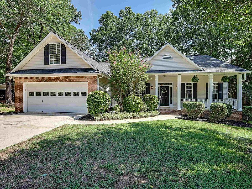 This exquisite home in popular Palmetto Hall offers an unparalleled combination of comfort, privacy, and convenience. With 3 bedrooms, 2 full baths, dedicated office space, and FROG this home is designed to meet your every need. As you step inside, you'll be greeted by the grandeur of cathedral ceilings in the great room, creating an open and airy ambiance that's perfect for both entertainment and relaxation. The waterproof laminate flooring throughout the living area not only enhances the aesthetic appeal but also ensures easy maintenance. The freshly painted main level also features all the bedrooms downstairs. The large primary bedroom provides a private sanctuary of comfort, complete with an ensuite and his and her walk-in closets. The additional two spacious bedrooms on the other side of the home offer flexibility and ample space for family members or guests. Step outside to the covered screen porch, perfect for morning coffee or unwinding. The deck offers a panoramic view of the private backyard, enveloped by mature trees creating tranquility. The backyard is framed by mature hardwood trees and non-buildable woods behind the home. The location couldn't be more ideal - with quick access to I-20 and downtown Lexington, commuting is a breeze. Top-notch schools are just a stone's throw away, making this home an excellent choice. Whether you're looking for shopping, dining, or outdoor activities, this prime location puts it all within easy reach.