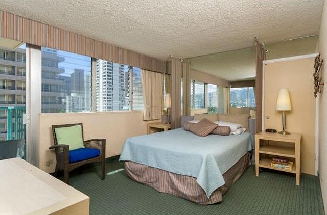 GREAT INVESTMENT or OWNER USE in desirable Waikiki boutique condo-tel. This Hawaiian getaway with cool mountain views is in ideal location just 2 blocks from Waikiki Beach, Restaurants, Shopping, Entertainment. Amenities: Spa, Cafe/Bar, Pool, Fitness Facility. Unit fully furnished with A/C, Cable TV, Electricity, Hot Water. Easy to join hotel pool and use as Investment/Vacation Rental.