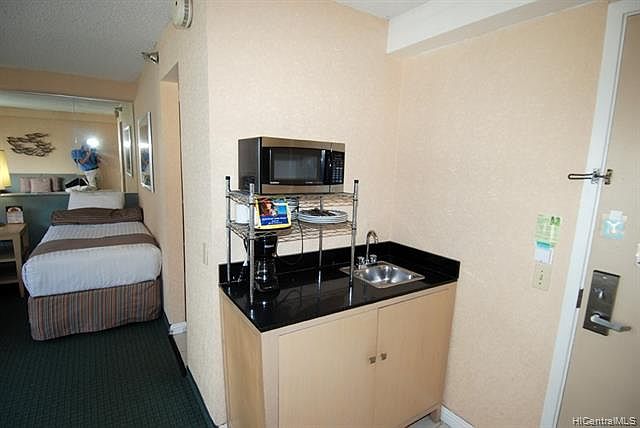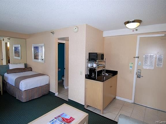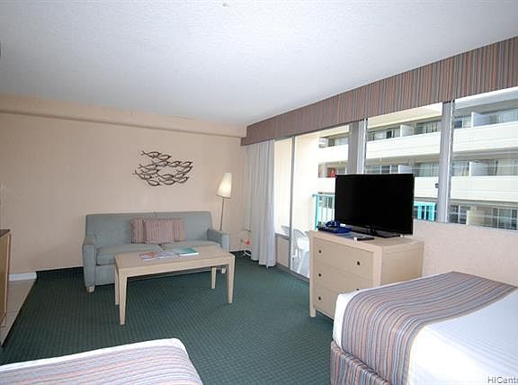 320 square foot studio unit in the Aloha Surf Hotel. Unit is in above average condition. Currently Vacant- Easy to view. This unit is also approved for full time owner occupant living. Can also be placed in the Hotel Rental pool.Please provide day before notice as I need to coordinate all showings with the front desk. This unit has been in the hotel rental pol. Please e-mail me for 2018 & 2019 Income Statements.