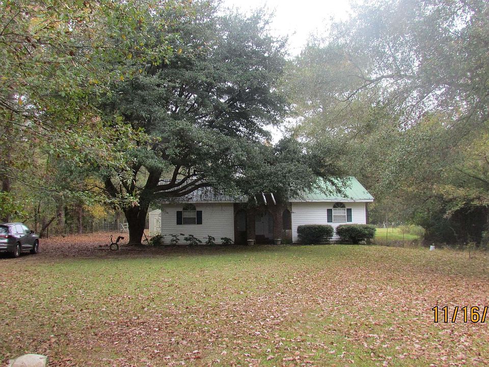 Vinyl Frame, large living room open to the dining room and kitchen, separated by breakfast bar, wood laminate in kitchen, dining and living room, glass sliding door in living room, laundry closet in kitchen, two bedroom with double closets, safe in closet will remain with the property, carpet flooring, one bath with shower over bathtub, double garage with two roll doors all sitting on 6.53 acres of land. Creek runs through the beautiful pasture land that has lots of fences and a barn/shed. Seller does have flood insurance on the property but says house has never flooded. Road has flooded. (Shed next to garage does not remain with the property. It will be moved before closing)
