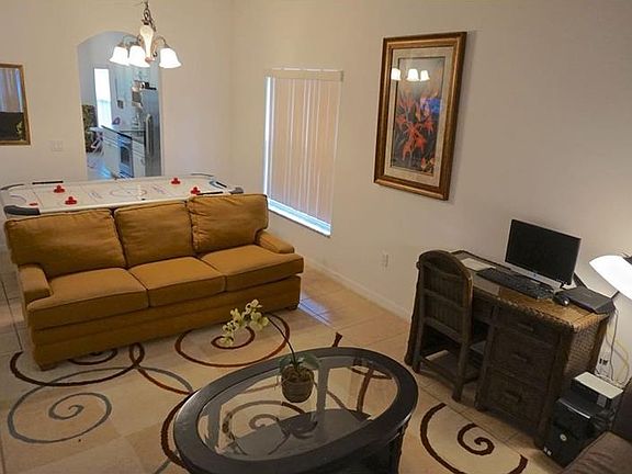 Come see this beautiful furnished home in the very popular and gated community of Highgate Park, located only 12 miles from Disney World. West facing pool deck, never miss a sunset over the amazing and private view of the conservation area. Large lanai covers you from the sun should you want to relax in the shade for a bit. Pool deck has an outside shower which is very convenient when you get out of the pool or the jacuzzi. House boasts of 5 bedrooms where as 2 of them are Masters with large en-suite bathrooms with double sinks. 4.5 bathrooms total. Kitchen has a dining area and stainless steel appliances and comes fully equipped. Lots of place for everyone with 2 separate living rooms. Highgate Park also has a playground and a tennis court. Home has bookings that will convey if you choose to use it as a vacation home. Lawn service and cable is included in the HOA fees and the community is zoned for residential and short-term rentals. Shoppes and restaurants just 5 minutes away.