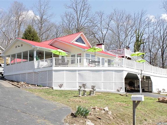 FULLY FURNISHED, WATER VIEW, HANDICAP ACCESS. RV PAD W/ELECT./WATER & SEPTIC HOOKUPS. COVERED AND OPEN DECKS. Recently renovated, Living Room hard wood floor, knotty pine walls and ceiling. Great Stone Wood burning fireplace. New central heat/air & water heater. RV pad w/water, elect. and septic hookups. Golf course nearby, golf cart friendly neighborhood with several miles of paved roads. Water access to Tn. River. Property across from Marina. Covered 3 car parking plus one car garage. Two Street access.