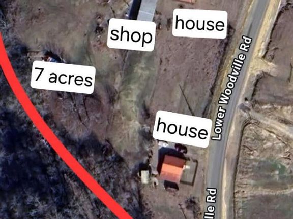 Aproximatley 6 acres with two houses, two barns, two sheds, and two fenced pastures for horses. 444, 446, and 452 Lower Woodville Rd are being sold together. Brick house at 444 Lower Woodville rd is a 3 bedroom 1 bath, 875 square foot house built in 1974. The wood house on 446 Lower Woodville rd is a 3 bedroom 1 bath, 1,132 square foot house built in 1950.