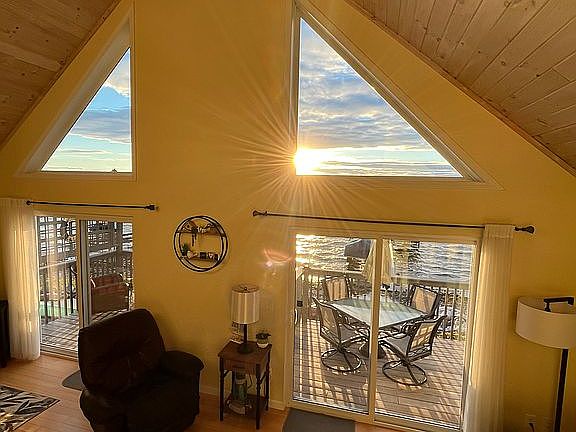 Open floor plan with white washed wood cathedral ceilings. Bamboo flooring. Master bedroom on main level with large closet. Full basement with living area has outside access. Upstairs loft for sleeping options. 8'x12' shed. Owned land. Boat ramp with direct access to the lake.