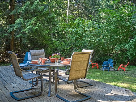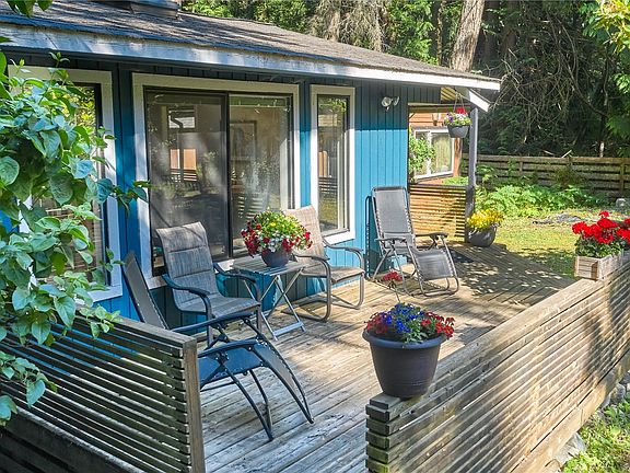 Beautifully and completely renovated home on a large treed lot on a quiet street…absolute perfection! Large sunny decks front and back with a covered breezeway joining them. Very bright and open great room with two large sky lights and cozy wood stove. The larger bedroom has a bonus area that could be an additional bunk area or even an office! Surrounded by tall evergreens for the ultimate in privacy yet open enough to get lots of sun. Fantastic large workshop/storage shed for your projects or beach toy storage. This home is the perfect weekend getaway or a full time residence. Exceptional value and as quiet a location as there is…and only minutes to Lily Point Park or Maple Beach.