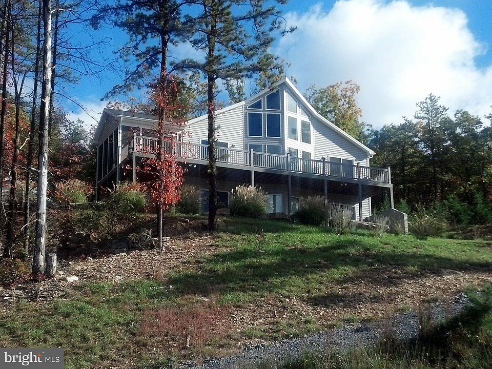 Million Dollar Mountain Views, Wall-to-Wall! Perched at elevation with commanding southwest-facing views of the Sleepy Creek Wildlife Management Area, this striking chalet-style home invites you to live eye-level with the horizon. Framed by a dramatic prow window wall, the great room delivers a front-row seat to some of the most breathtaking sunsets you'll find in The Woods. Step inside to discover a thoughtfully designed layout that lives large across three finished levels. As you enter, a full bath and guest bedroom are tucked quietly down the hall to your left, while another bedroom sits just off to the right—perfect for hosting guests with comfort and privacy. Continue forward into the open-concept great room, kitchen, and dining area—an entertainer’s dream wrapped in glass and natural light. Soaring cathedral ceilings with exposed wood beams elevate the space, while the prow wall of fixed windows keeps the mountain views ever-present. A cozy wood-burning stone fireplace anchors the great room, adding rustic charm and warmth to your everyday living. The kitchen features red oak cabinetry, hardwood flooring, under-cabinet lighting, and a center island with pendant lighting—a chef’s perch with a panoramic backdrop. From the dining area, step out to the screened porch with TimberTech decking and ceiling fan—ideal for cool breezes and al fresco dining. The porch flows seamlessly onto the open deck, which also connects to the great room and the primary suite. This outdoor space is where morning coffee meets golden hour wine, all backdropped by those jaw-dropping mountain vistas. The main-level primary bedroom offers vaulted ceilings, plush carpeting, a walk-in closet, private slider to the deck, and a full ensuite bath with ceramic tile flooring and a double bowl vanity. Upstairs, a versatile loft overlooks the great room and offers the perfect space for a home office, reading nook, or creative lounge. The finished walkout lower level offers even more space to spread out. A central family room with wood burning fireplace is positioned to take full advantage of the prow-style fixed windows—ensuring that even downstairs, the mountain views take center stage. Two additional bedrooms and a large full bathroom are located on this level, along with a generous unfinished storage space that currently houses the laundry area and offers ample room for tools, hobbies, or future expansion. Other highlights include a Class A Membership to The Woods Club amenities—golf, pools, tennis, fitness, and more—and a peaceful, private setting designed to showcase the natural beauty that makes this region so special. If your soul is stirred by long-range views, ever-changing skies, and living among the treetops, this is the one.