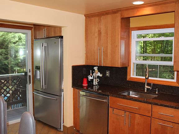 Bright & Beautiful Contemporary, privately set on a wooded level 2 acres, surrounded by NYS watershed property with open space for peace and quiet; tons of natural light. Stunning Living Room with brick fireplace; Dining Room; Wrap around decking; Real 2 Panel Wood Doors, French Doors; Hardwood Floors; New stainless steel Eat in Kitchen with Quartz Counters; Skylight; Family Room with Cathedral Ceilings; Master has Whirlpool & separate shower. Lake rights to a beautiful sandy beach with basketball court at Seven Lakes community. Taxes do not include STAR deduction of $1,368.